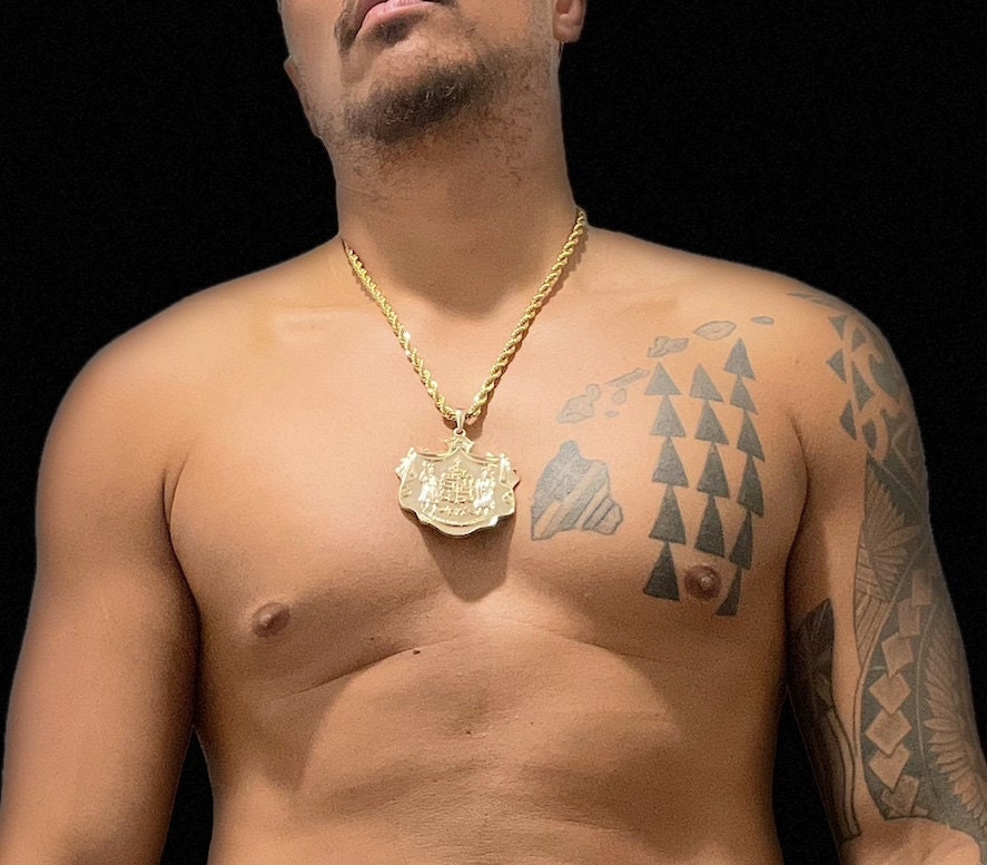 "Big Tymah" - 14k GOLD Hawaiian Coat of Arms XL Pendant with 6mm Thick Chain
