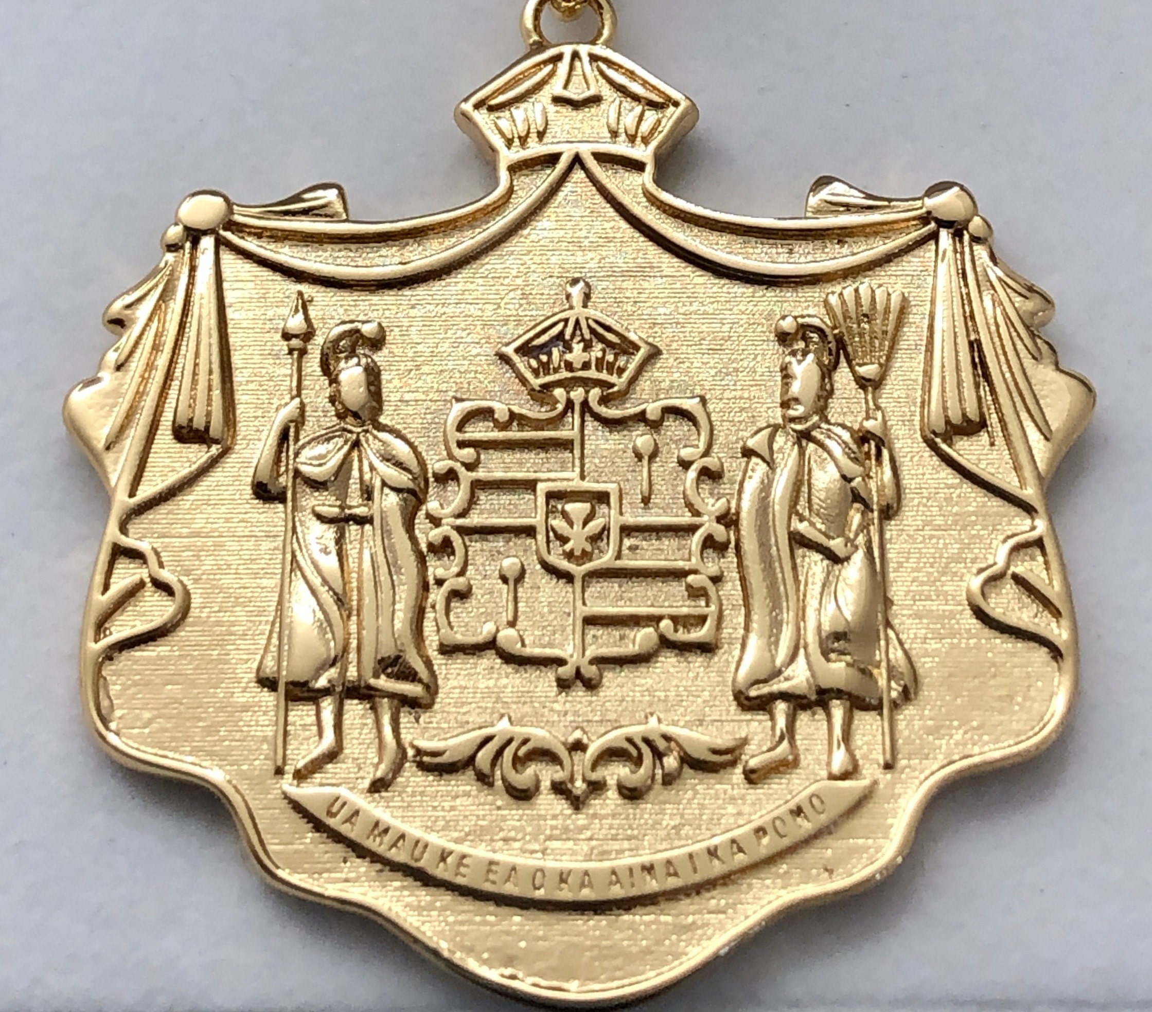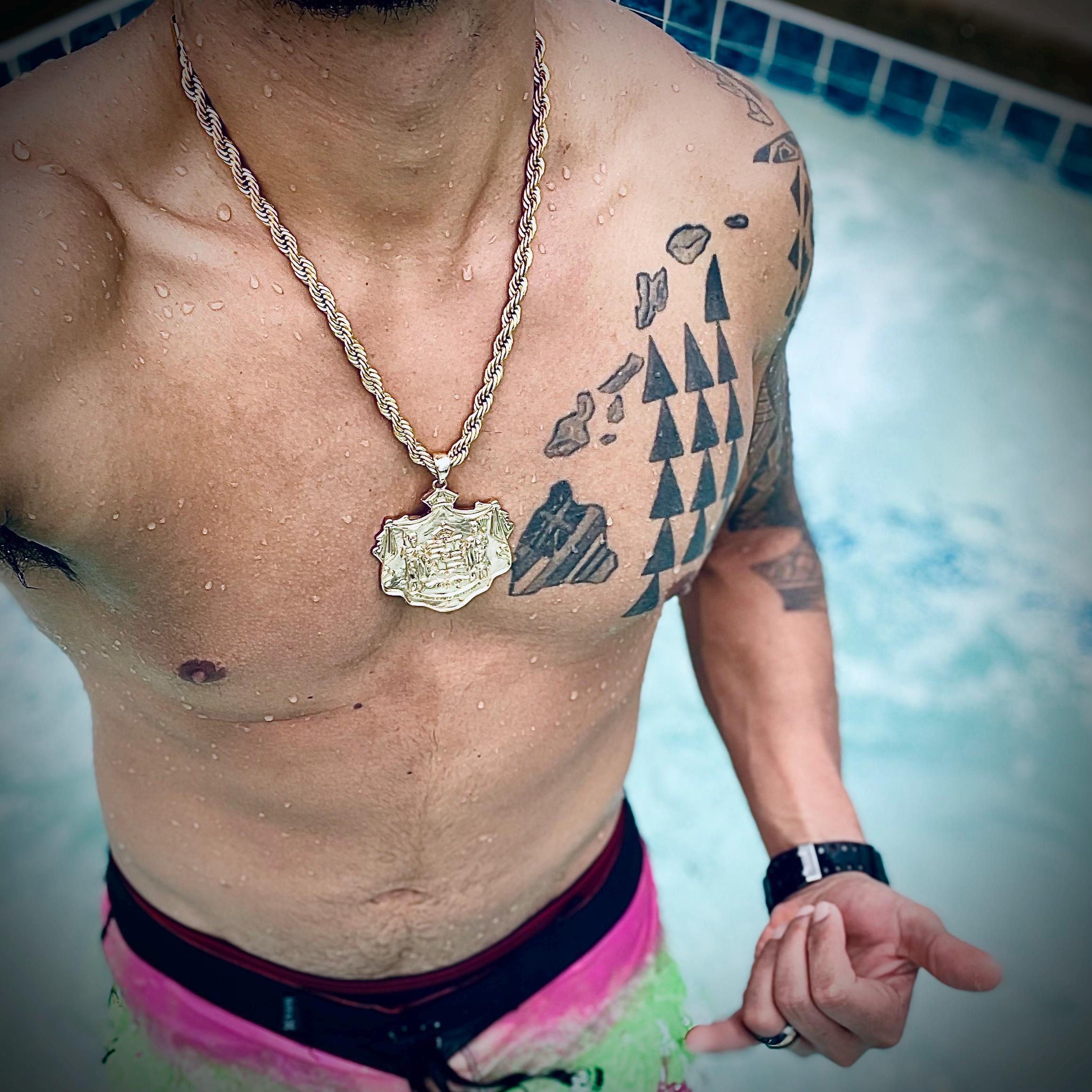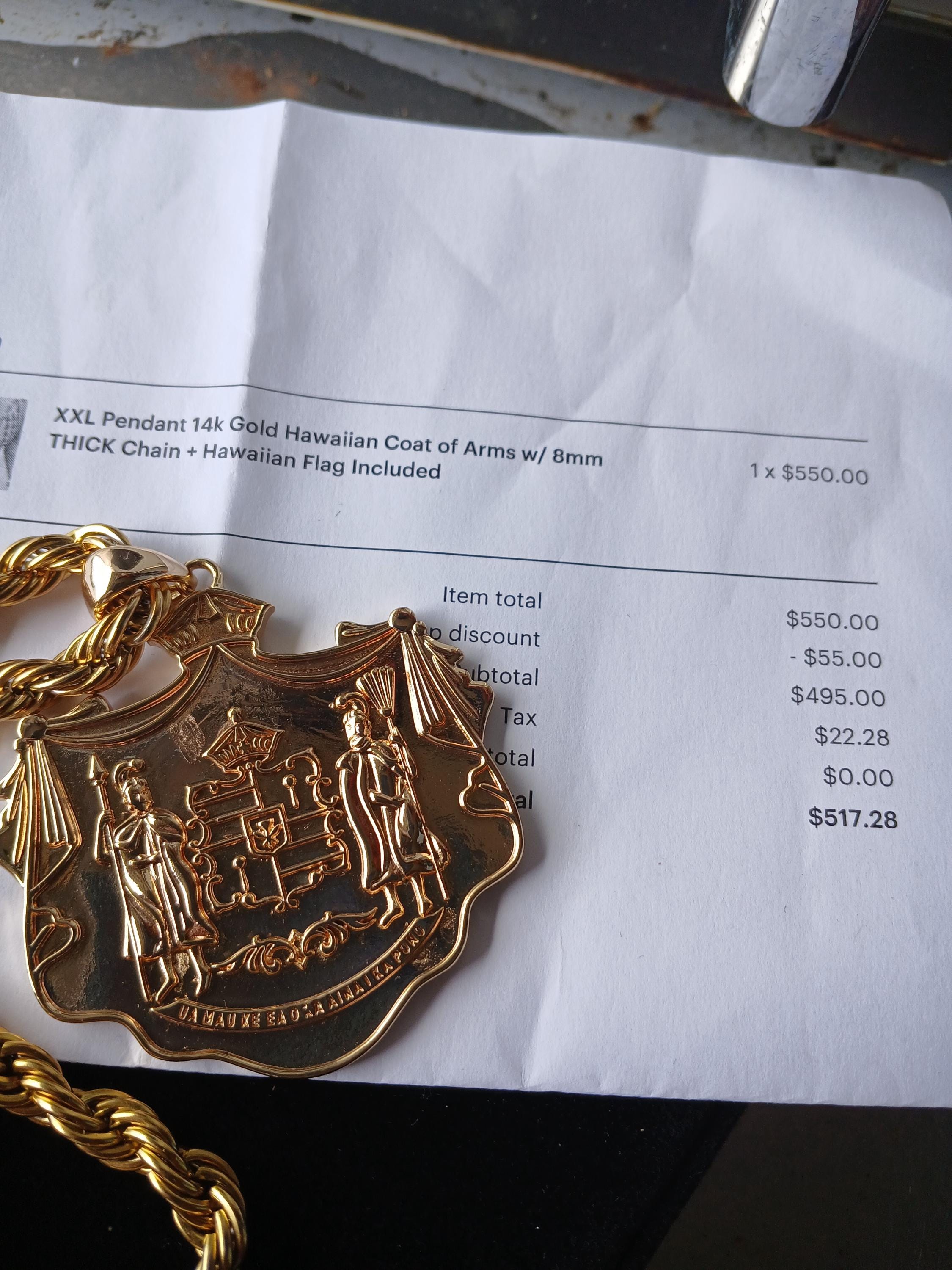 XXL Pendant 14k Gold Hawaiian Coat of Arms w/ 8mm Thick Chain + Hawaiian Flag INCLUDED!