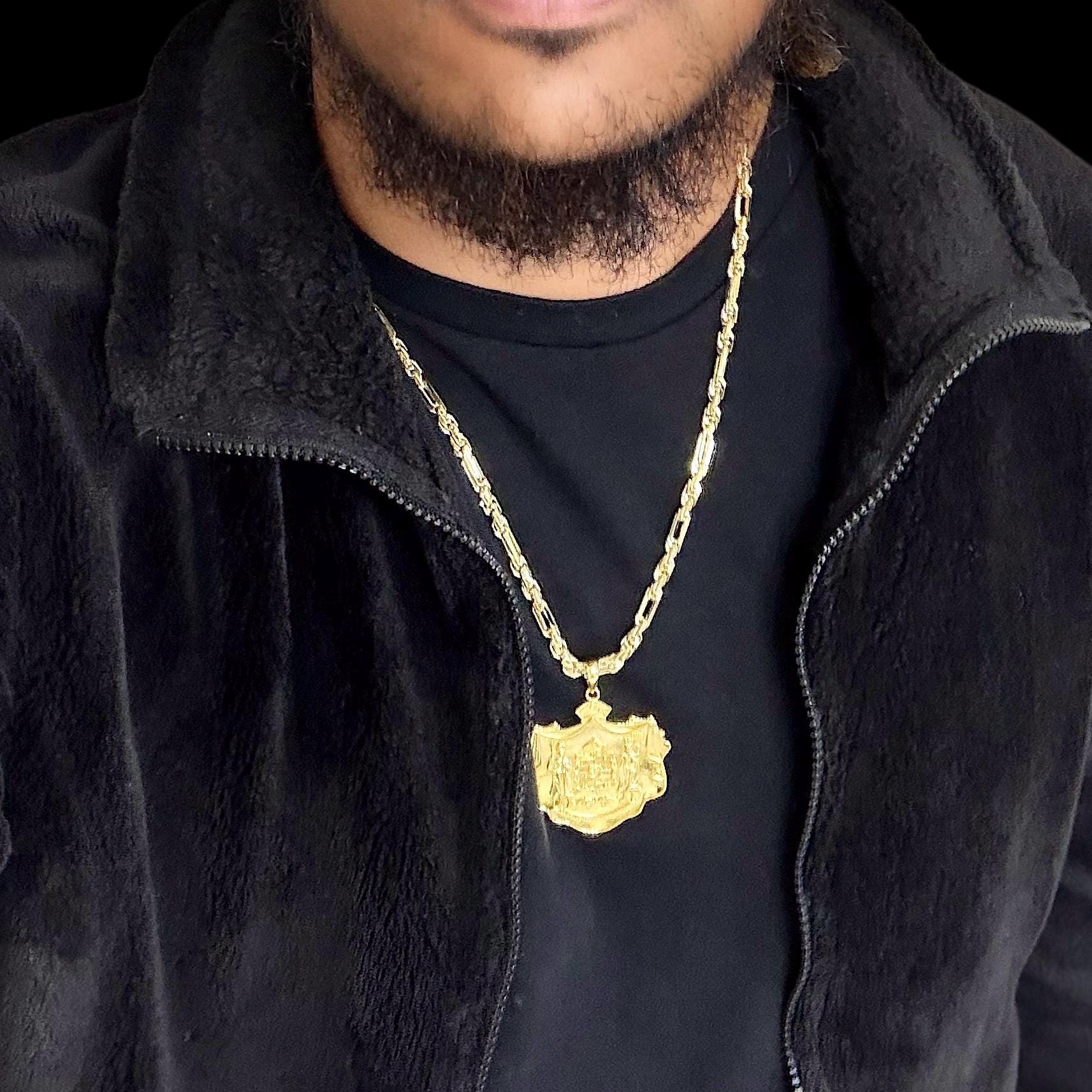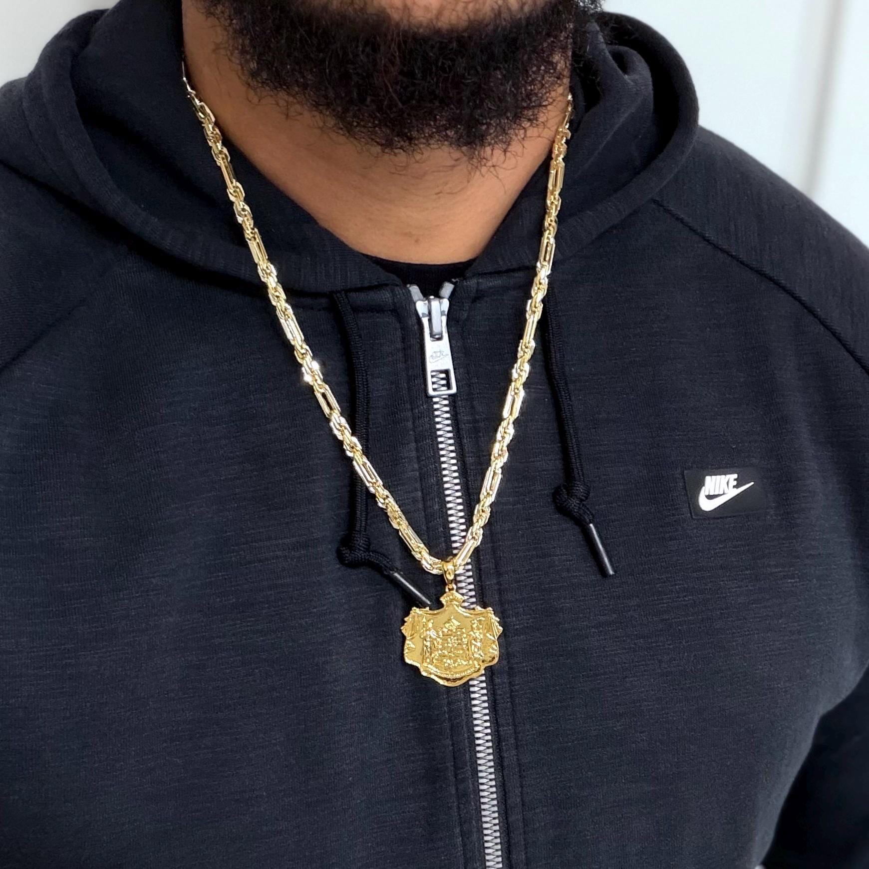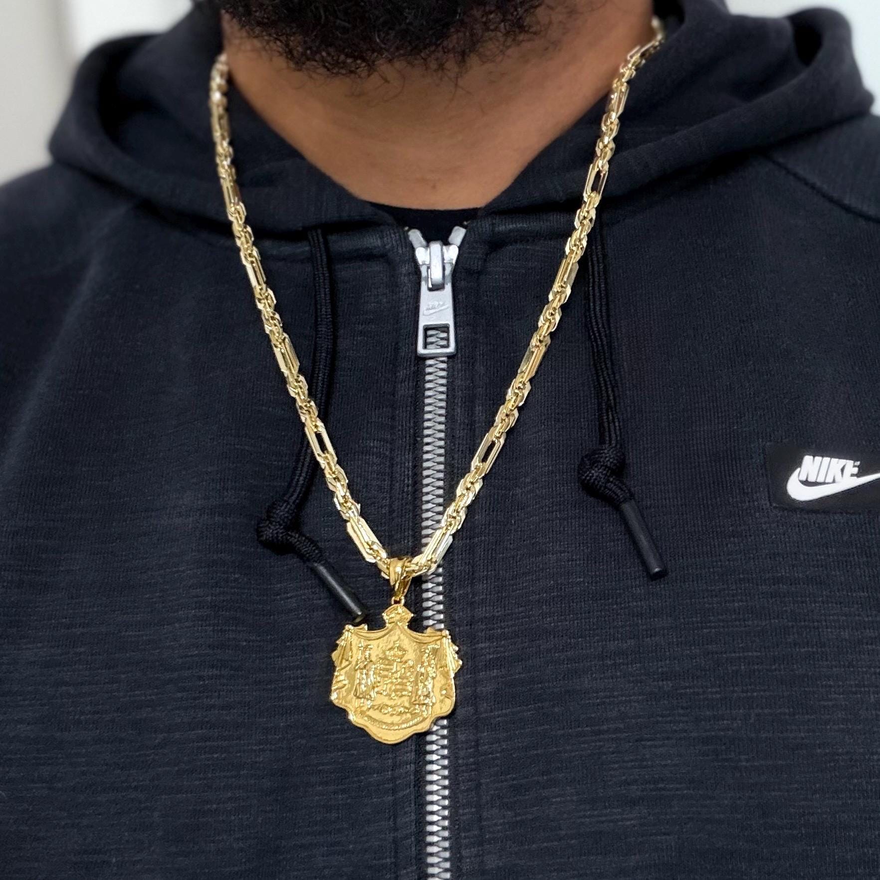 5mm x 24in Thick Luxury Italian Milano 14k Gold Hawaiian Coat of Arms Pendant