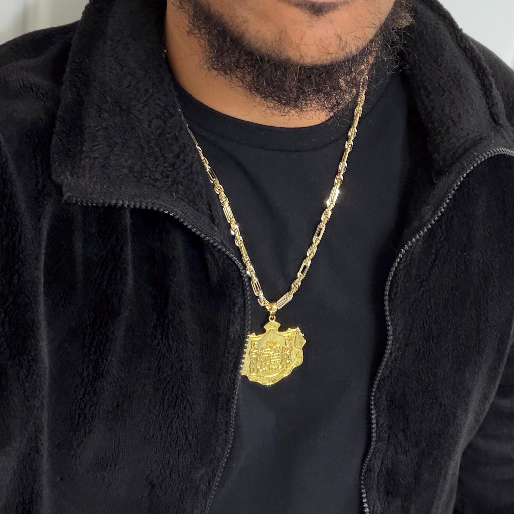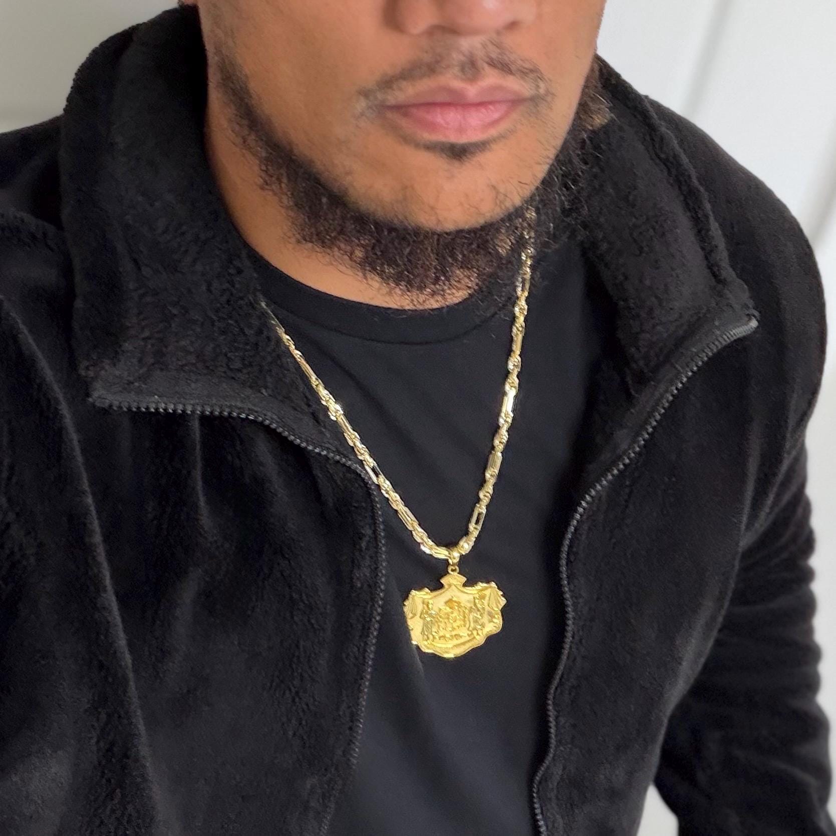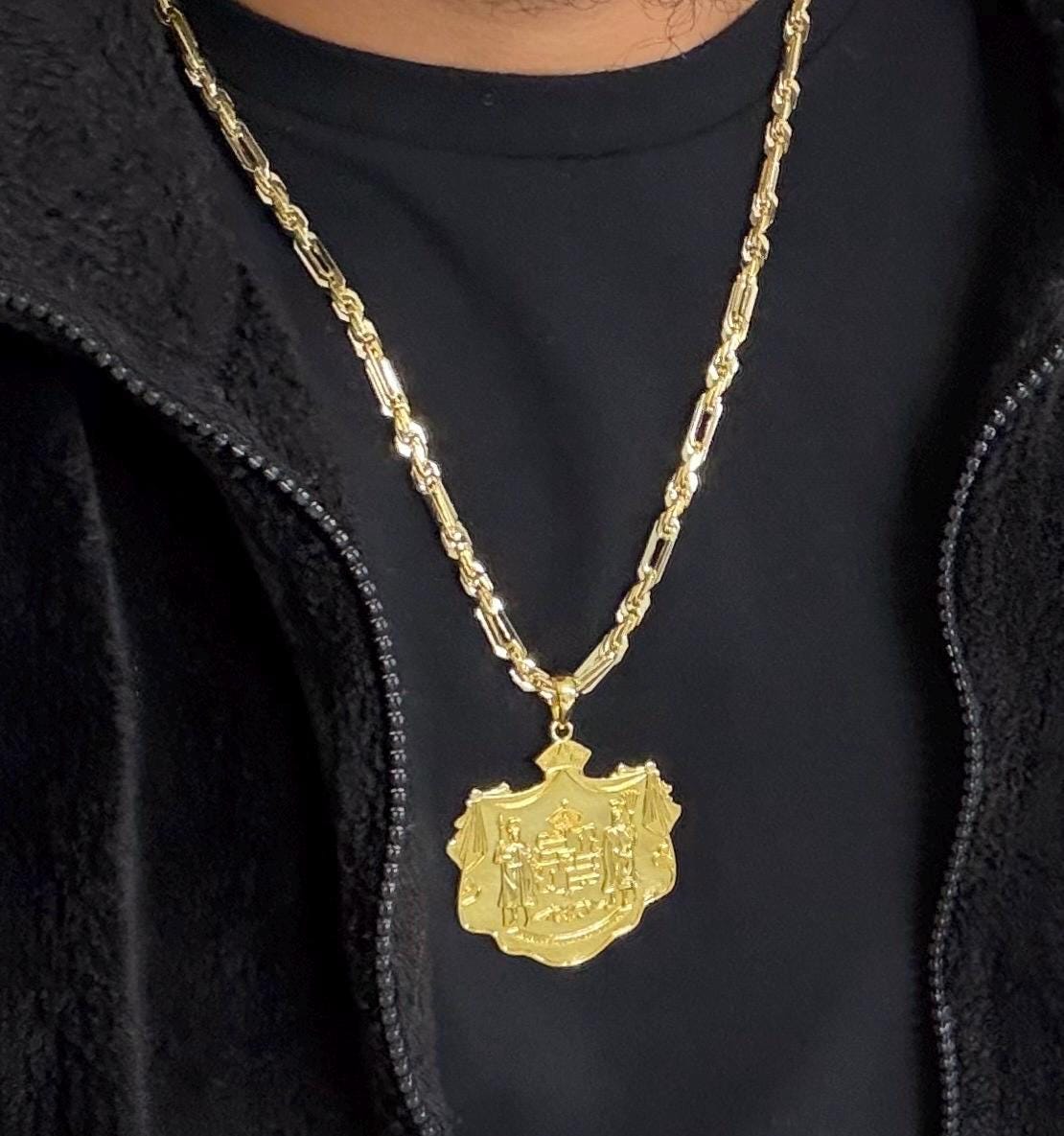 5mm x 24in Thick Luxury Italian Milano 14k Gold Hawaiian Coat of Arms Pendant