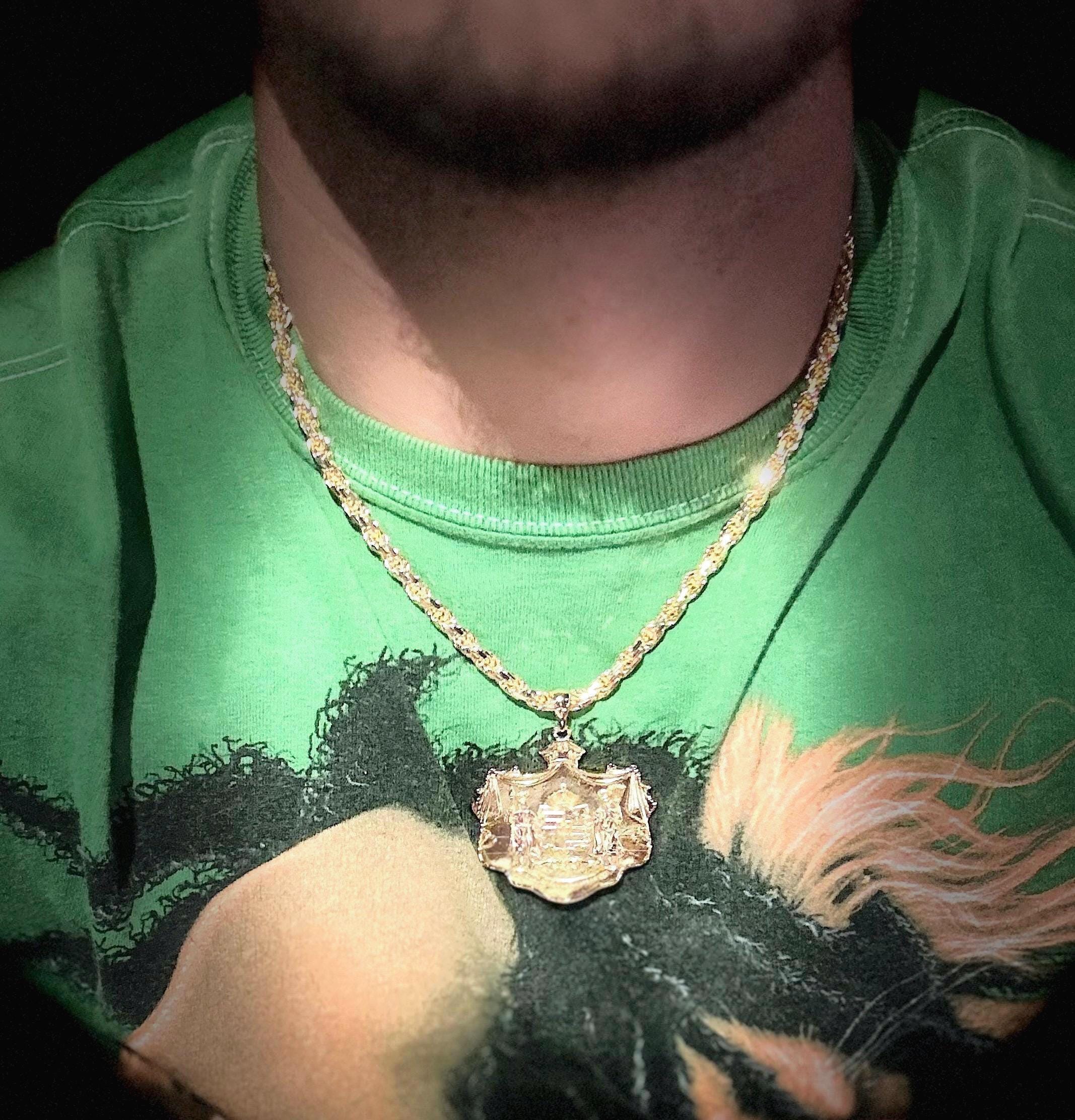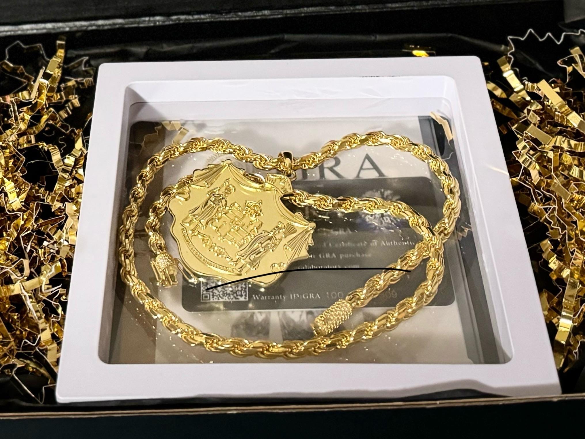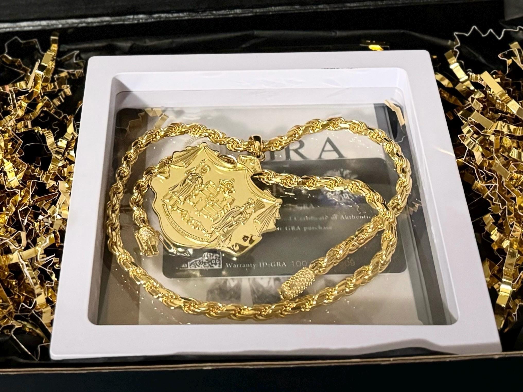 BRAND NEW XL Pendant 14k Gold Hawaiian Coat of Arms w/ 14K 6mm Thick Chain INCLUDED!